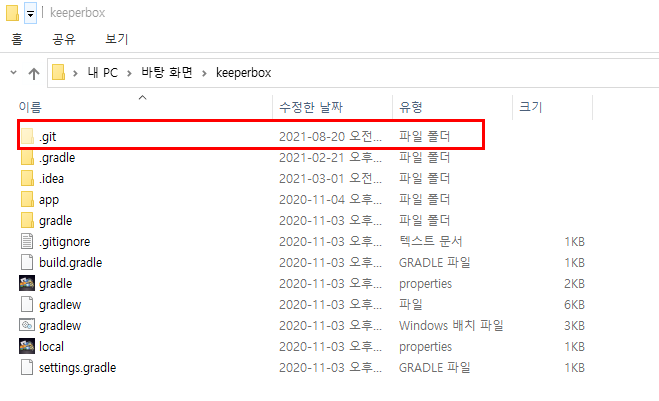 ** .git 파일이 보이지 않는다면 [보기-> 숨긴 항목]을 체크해주세요