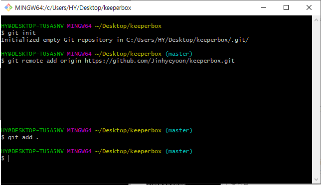 업로드할 프로젝트가 있는 폴더를 github와 연결하는 과정입니다.