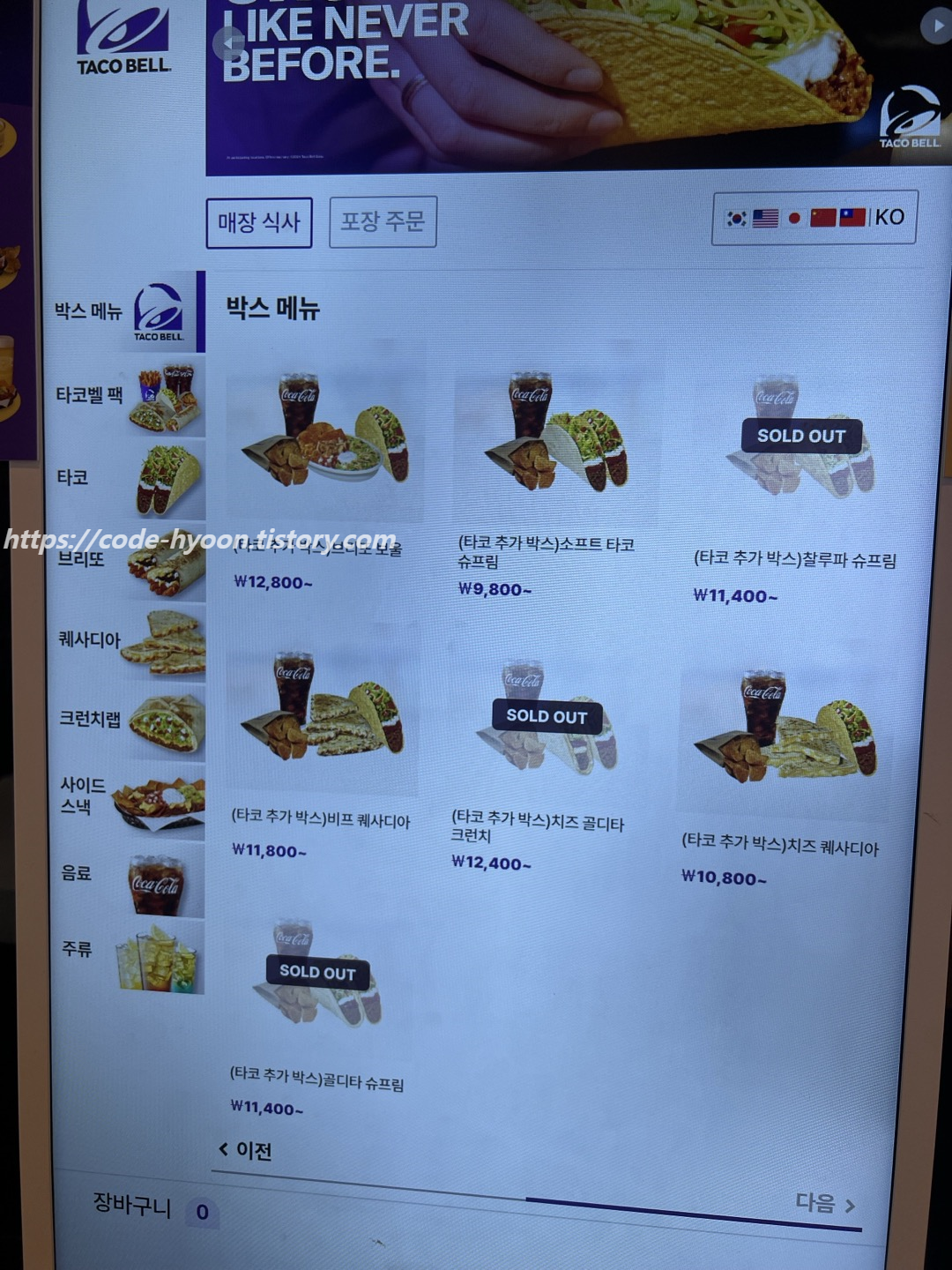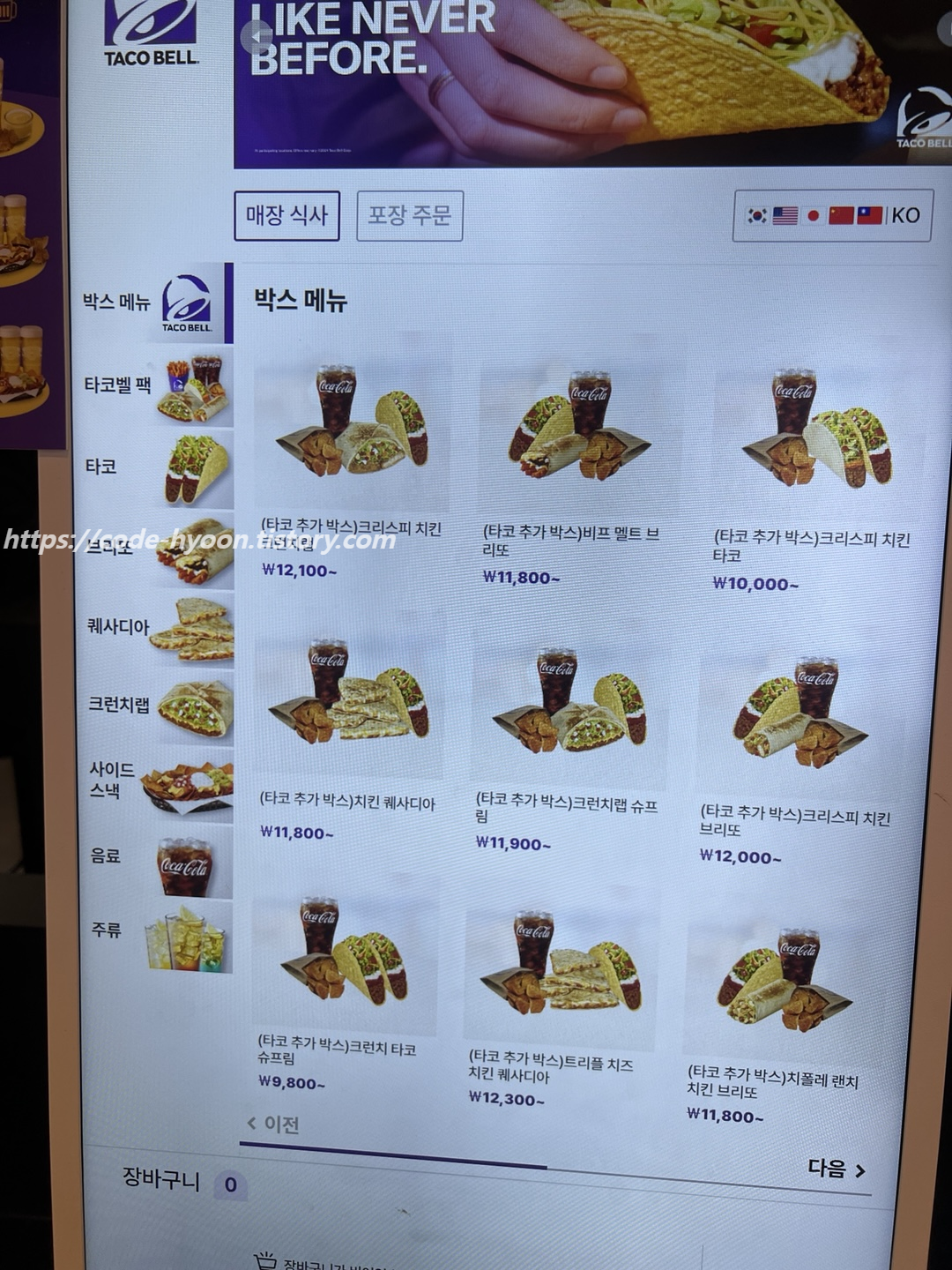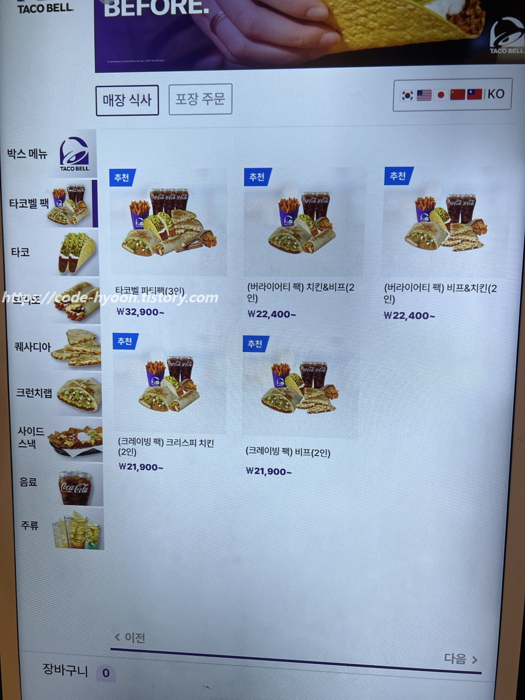 단품보단 박스나 타코벨 팩을 먹는 것을 추천드립니다.