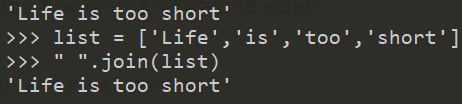 Q7 ['Life', 'is', 'too', 'short'] 리스트를 Life is too short 문자열로 만들어 출력해 보자.
