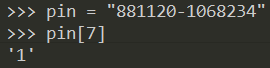 Q4 주민등록번호 뒷자리의 맨 첫 번째 숫자는 성별을 나타낸다. 주민등록번호에서 성별을 나타내는 숫자를 출력해 보자. ( ※ 문자열 인덱싱을 사용해 보자. )
