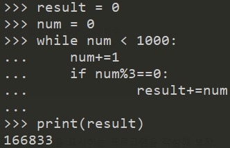 Q2 while문을 사용해 1부터 1000까지의 자연수 중 3의 배수의 합을 구해 보자.