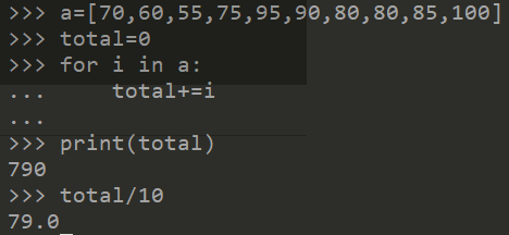 for문을 사용하여 A 학급의 평균 점수를 구해 보자.
