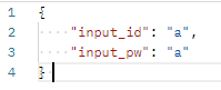 서버에 보낼 데이터이며 입력한 id 와 password를 서버에 보내줍니다.